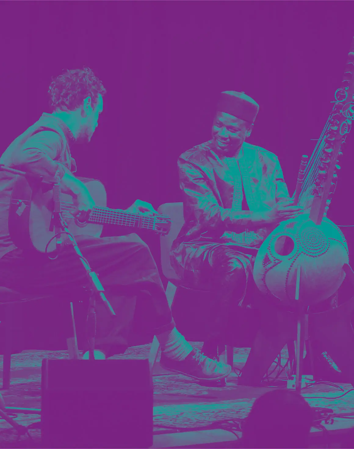 Une rencontre rêvée entre kora et guitare classique, orchestrée par deux virtuoses aux doigts et à l’esprit aussi alertes que subtils, et transcendée par les apparitions enveloppantes du Quatuor Una Corda.