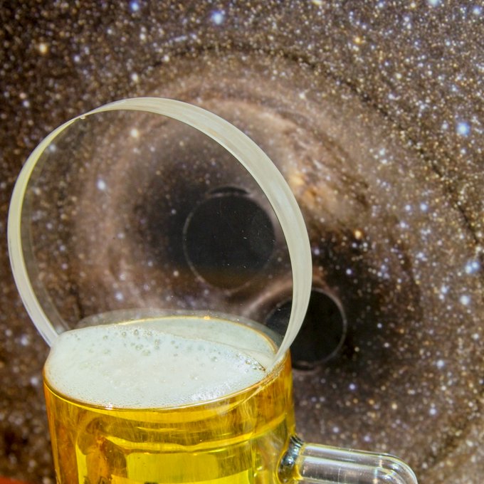 Comme l'illustre la photographie ci-dessus, le miroir en saphir (Al2O3) qui fait trempette dans une bonne bière fraîche, représente une nouvelle technique de réflectivité très prometteuse !!
