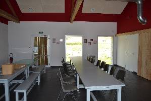Je propose donc une randonnée pédestre en boucle d'une longueur d'environ 25 km et avec environ 1100m de dénivelé positif au départ de la Valla-en-Gier, passant par le Bessat et la Madone du Bessat, puis par la Croix de Chaubouret, avec retour par le Rot et la Madone de la Valla-en-Gier. On ira manger les pique-niques aux tables de pique-nique situées à côté de la salle hors sac de la Croix de Chaubouret si le temps s'y prête (peu probable), sinon dans la salle hors sac même (gratuite, chauffée, et avec toilettes, voir photo du haut).
