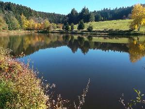 Je propose donc une randonnée pédestre en boucle d'une longueur d'environ 23 km au départ du parc de la Croix de Garry tout proche de Saint-Genest-Malifaux, passant presque dès le début sur une des rives du lac du Sapt, puis par Saint-Romain-les-Atheux et le lac du Pêcher (voir photo du haut) avec un retour qui se terminera par l'autre rive du lac du Sapt.