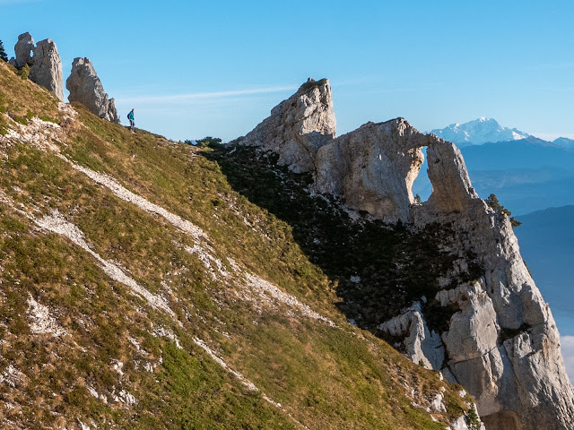 Pause repas au sommet, puis direction le col de Bellefont et la croix de l'Aulp du Seuil. La descente se fera pas le magnifique Pas de Ragris