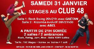 - A 20h00 stage de Rock Swing (pas de base Rock maîtrisé) avec GAËTAN.