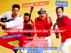 concert dansant avec les "gunshot". 2 salles : 1 rock et 1 latino . à partir de 21h00